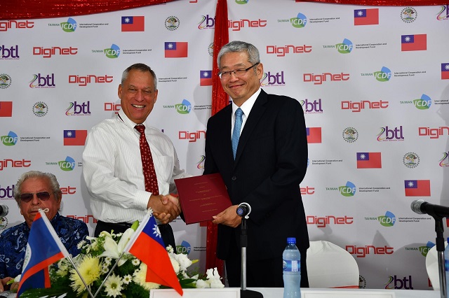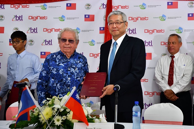 財團法人國際合作發展基金會(國合會) 於本(107)年6月28日在貝里斯市貝里斯電訊公司(Belize Telemedia Limited, BTL)旗艦店舉行「貝里斯國家寬頻貸款計畫」簽約儀式,由國合會項恬毅秘書長、BTL董事長Nestor Vasquez及董事Eric Eusey共同簽署貸款合約。貝國政府另提供貸款主權擔保,並由財政部次長Joseph Waight代表貝國政府出席與國合會簽署保證合約,以彰顯對該計畫的重視。我駐貝里斯劉克裕大使及駐貝里斯技術團人員、貝里斯相關官員及媒體記者皆應邀出席觀禮。