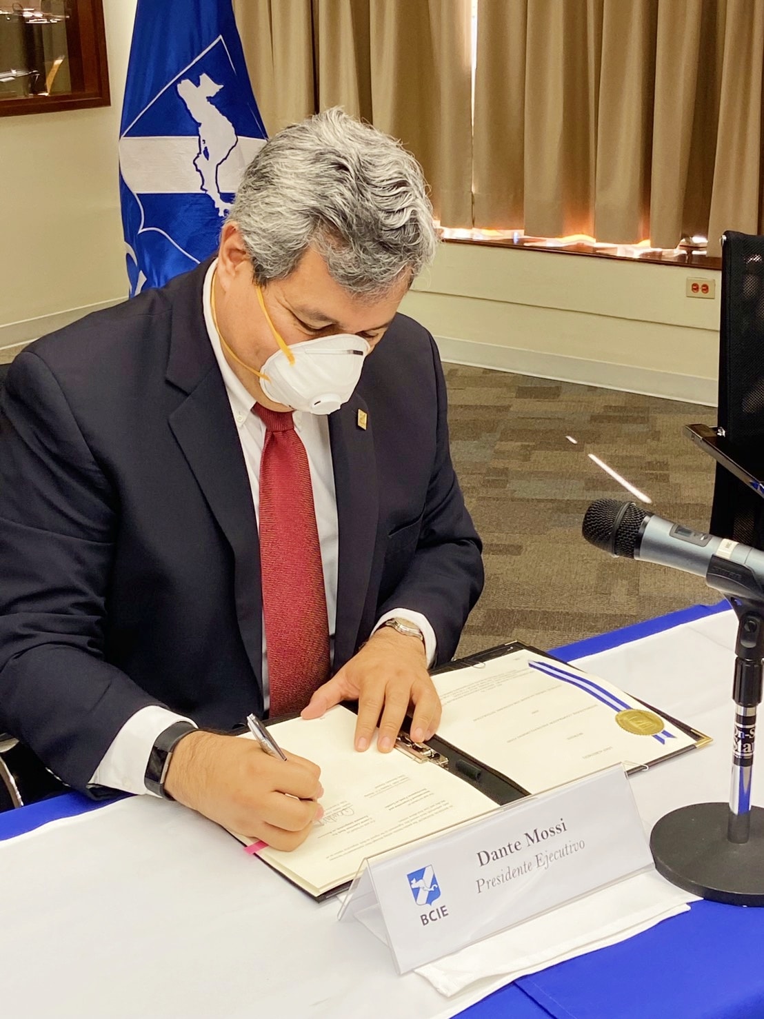 財團法人國際合作發展基金會(國合會)為協助中美洲國家推動新冠肺炎(COVID-19)抗疫紓困措施,因應嚴峻疫情對人民健康及社會經濟造成的重大衝擊,與中美洲經濟整合銀行(CABEI)簽訂兩項貸款協定。簽約儀式於本(109)年8月28日在宏都拉斯首都德古西加巴CABEI總部舉行,由總裁摩西(Dr. Dante Mossi)代表CABEI簽署協定,國合會項恬毅秘書長透過預錄影片致詞,我國駐宏都拉斯邢瀛輝大使及駐CABEI邱偉勝董事均應邀出席見證。