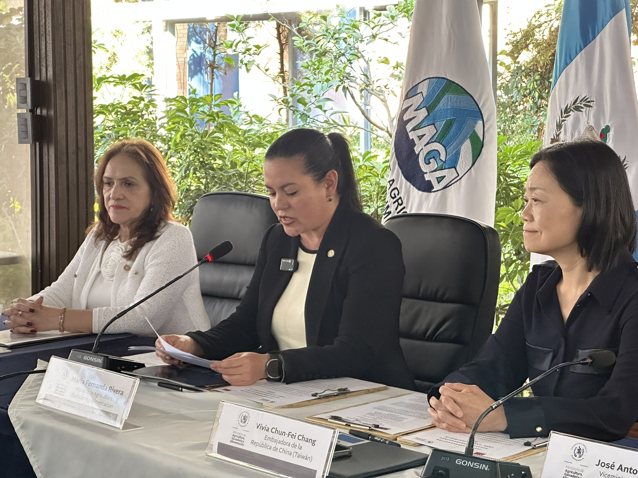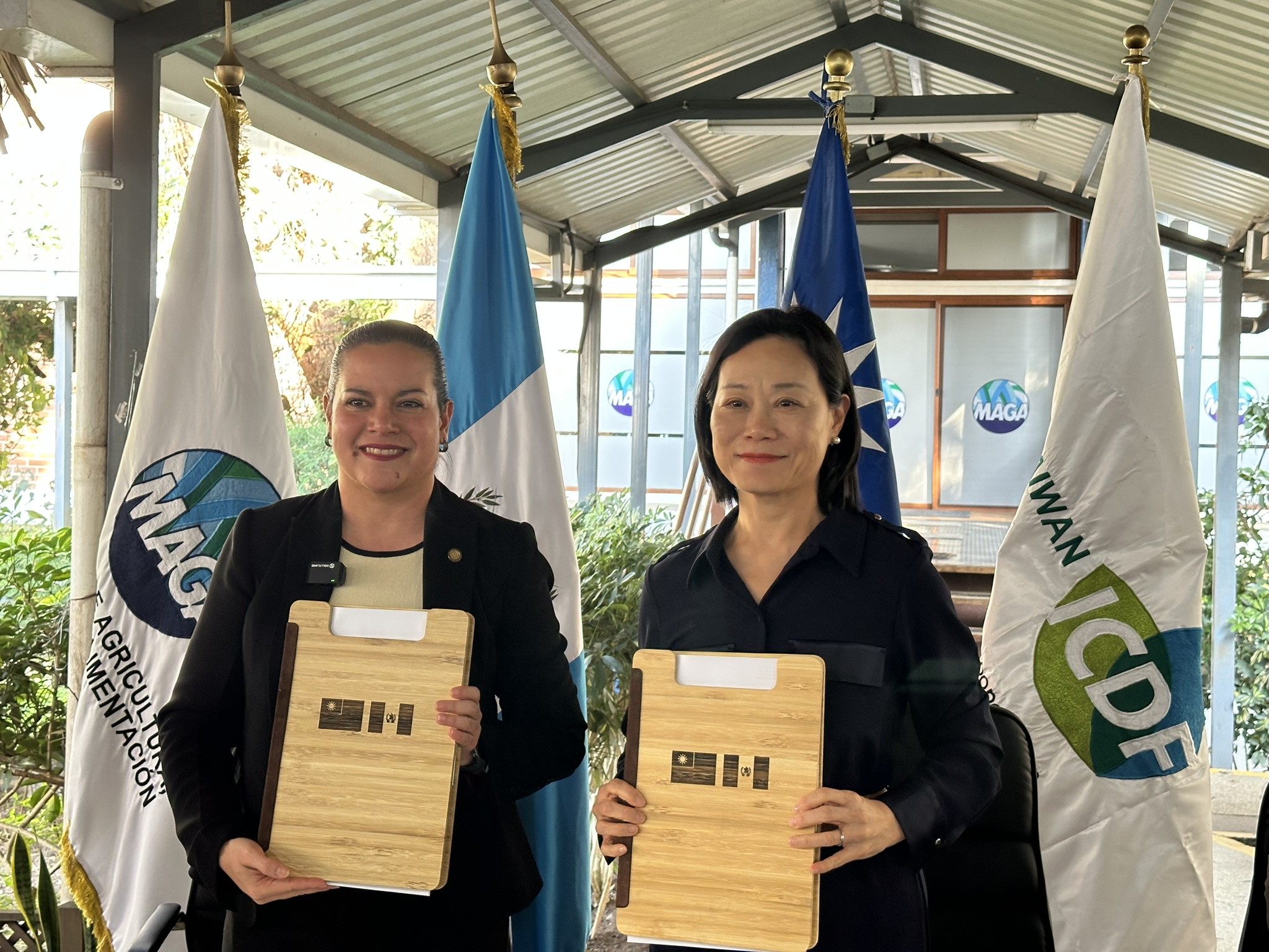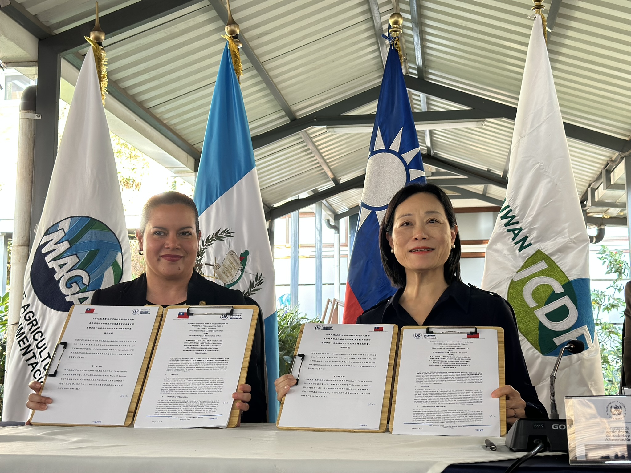 簽署儀式於瓜地馬拉農業、畜牧與食品部(Ministerio de Agricultura, Ganadería y Alimentación, MAGA)舉行,由瓜國農牧部部長María Fernanda Rivera Dávila與我國駐瓜地馬拉大使張俊菲代表雙方簽署。外交部次長María Luisa Ramírez Coronado、農村經濟發展部次長José Antonio López、竹產業協會會長Mynor Medrano、農業發展諮詢委員會執行秘書長Hernan Samiento、總統府計畫規劃局代表Lucia Lopez,以及國合會駐瓜地馬拉技術團團長鄭坤木等出席見證,展現臺瓜雙方對竹產業發展與永續合作之高度重視。