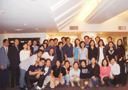 | 為了讓海外志願服務工作能夠藉由彼此經驗傳承與交流,本會特於十月十九日舉辦首度志工聯誼會,共計四十二名志工參加。藉由志工們彼此分享經驗的同時,也等於是讓前往服務單位的第六屆志工吃下一顆定心丸。在此同時身為海外服務工作團團長之本會楊子葆秘書長在海外服務工作團志工的故事第一集--「溫馨滿世界」點出推動海外志工二層意義,也成為今年第六屆志工出發前最好的嘉勉。(右圖為首度志工聯誼會合影) | ![]() |