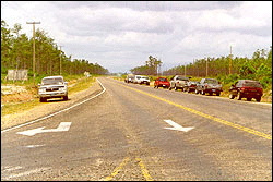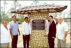 | 貝里斯南部公路整建計畫之第四段公路 | 貝國工務部長Marin(左三)及本會楊秘書長(右二)共同為南部公路第四段公路舉行通車暨紀念碑揭幕儀式 |