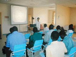 | 役男阮耀鋒在馬拉威湖邊與小朋友合影 | 役男阮耀鋒於姆祖祖中央醫院擔任電腦教學教師上課情形 |