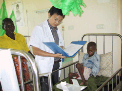 來到這邊剛滿三個月了,但至始至今,總不覺得來非洲是多麼了不起的事,或許是台灣人對非洲太陌生,還是太喜歡看小說和電影而深具想像力,總把非洲想成生人勿近的洪水猛獸般。其實在這裡,在我所選擇我想從事的小兒病房內,那些小朋友的哭笑嘻鬧聲,閉上眼睛聽著,我分辨不出來,這跟我在台灣醫院所聽見的有什麼不同?你摸摸他們的臉頰,逗逗他們,他們也會很高興的笑著,他們也喜歡人家抱抱,被打針時也是哭的淅瀝嘩啦,幫助他們,會讓自己更有成就感,因為你自己很清楚,對於一貧如洗的他們,你的確不圖他們能回報什麼!能有幾年的時間作一些不計報酬的奉獻,這可是回台灣後,在社會大眾眼中,和高薪劃上等號的醫師工作中,所得不到的滿足感呢!
