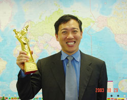 憑藉著海內外同仁一起打拼出來的成績,我以國合會秘書長的身份非常榮幸地獲得第四十一屆十大傑出青年國民外交類的榮譽。這對我個人而言當然是一種光榮,更重要的是,這些年來國合會同仁們的努力成果確實贏得了台灣各界的矚目、理解、認同與支持。 仔細翻閱十大傑出青年的歷史,在一九六三年第一屆得獎人的名單裡,我赫然發現在一九六一年還是「先鋒計畫」時期所派出第一位駐外農耕隊隊長鄒梅的名字,非常地高興!四十年前,國際合作發展團隊就已經有同仁獲得十大傑出青年的榮譽,代表當時社會的肯定;二OO三年,四十年後我的獲選,應該也代表台灣整體社會對於我所屬團隊一種持續至今的正面關切。因此這座金手獎不僅對我個人,或對國合會海內外同仁,應該都深具意義。我很感激,也希望大家繼續齊心以雙手共同開創國合會美好的未來,並且延續這個傳統,未來再有同仁獲選十大傑出青年。 |