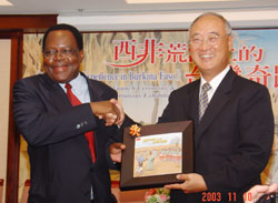 見證中布合作 為紀念我與布國技術合作邁入四十年的合作友誼,外交部杜筑生次長特別代表本會贈書給布國沙瓦多哥大使。 |