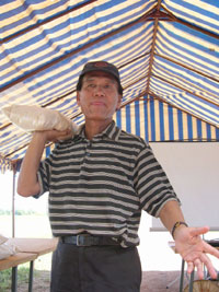 人間淨土 台灣的鄉親父老,這是我們工作的地方,有一望無際的田野、綻藍的天空,田埂土溝隨處可見土虱、魚群悠游。我們正在教導當地農民使用有機肥,這樣大夥才能每天大啖自然無污染的山珍野味。 |