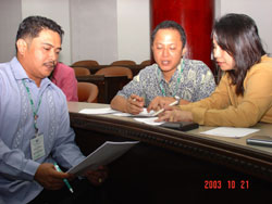 | 本會教育訓練處研習班業務自民國九十一年十月卅一日通過ISO 9001:2000 年版國際品保驗證,時光飛逝,一轉眼本會國際人力資源培訓業務ISO認證,已屆滿週年,按照ISO之規定,每年仍須稽核續評,檢測系統品質。因此,貝爾國際驗證公司主任稽核員林宜伶小姐於本年十月卅一日至本會進行全天之稽核續評並於當日下午五時結束會議中宣佈此次ISO 9001:2000續評結果初步已獲通過。俟貝爾國際驗證公司將相關續評資料送至英國Afaq-Eaga Ltd.發證機構進行後續作業,約一個月後頒發正式審查結果通知書。 |