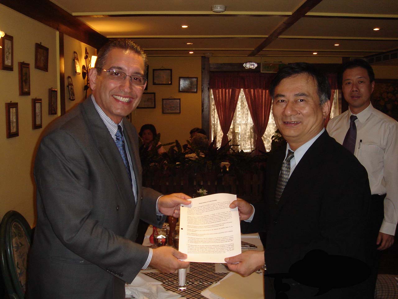 ▲國合會陳正忠秘書長 (右) 與美國第三大國際慈善組織Food For The Poor (FFP) 執行長Angel Aloma共同簽署「糧食援外計畫」合作意向書。 國合會陳正忠秘書長與美國第三大國際慈善組織糧食濟窮組織 (Food For The Poor, FFP) 執行長Angel Aloma於4月27日簽署糧食援外計畫合作意向書,由FFP負責援助物資的運輸費用,國合會則負責統整台灣政府的援外資源,共同協助糧食短缺國家人民免於飢餓之苦。 國合會與FFP的合作始於2005年,由駐宏都拉斯技術團與FFP協助當地慈善組織興築池塘、生產及銷售吳郭魚,不僅提供眾多貧童食物來源,也讓慈善組織累積可觀的營運資金。因計畫成效顯著,雙方續於2006年2月協議擴大合作模式及範疇,議定透過農業生產、吳郭魚養殖、醫療服務、小農貸款、社區發展以及人力資源發展等項目,在中美洲以及加勒比海地區展開合作計畫,由FFP供給計畫所需經費,國合會則提供專業人員以及在發展援助工作上的各項經驗,共同協助開發中國家在經濟、社會等各方面的發展。迄至2006年底,國合會與FFP已陸續在宏都拉斯、多明尼加、海地、瓜地馬拉、薩爾瓦多等國家合作近10項計畫,計畫金額超過150萬美金。 |