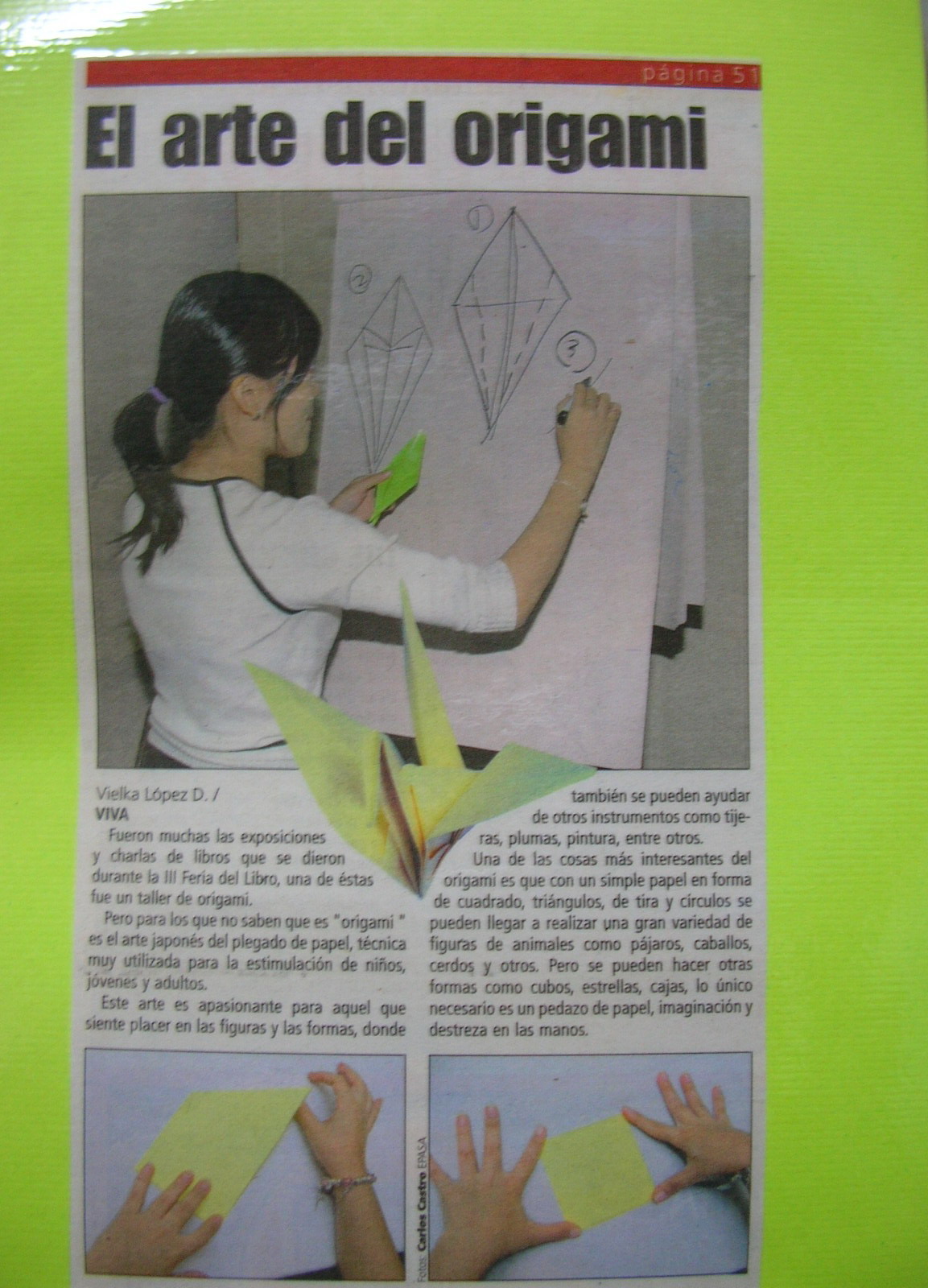兩年志工生涯充滿著無數個生命中的第一次,例如在某次志工定期會議上,當我表示願意推廣摺紙藝術後,大使館即邀請我至某所私立小學教授為期3天的課後輔導課程。當我帶著早先精心準備的西文摺紙講義及作品,第一次為當地正常的孩子上課時,當下真有得天下英才而教之的感覺。爾後教摺紙就成了我的工作之一,更代表大使館在2005年國際書展上開了一堂摺紙講座。當天我緊張地直發抖,邊講邊畫的模樣還上了報。這些難忘的經驗讓我明白了一個簡單的道理:永遠別拒絕挑戰,因為每當達成任務後,會發現自己的潛力無窮!