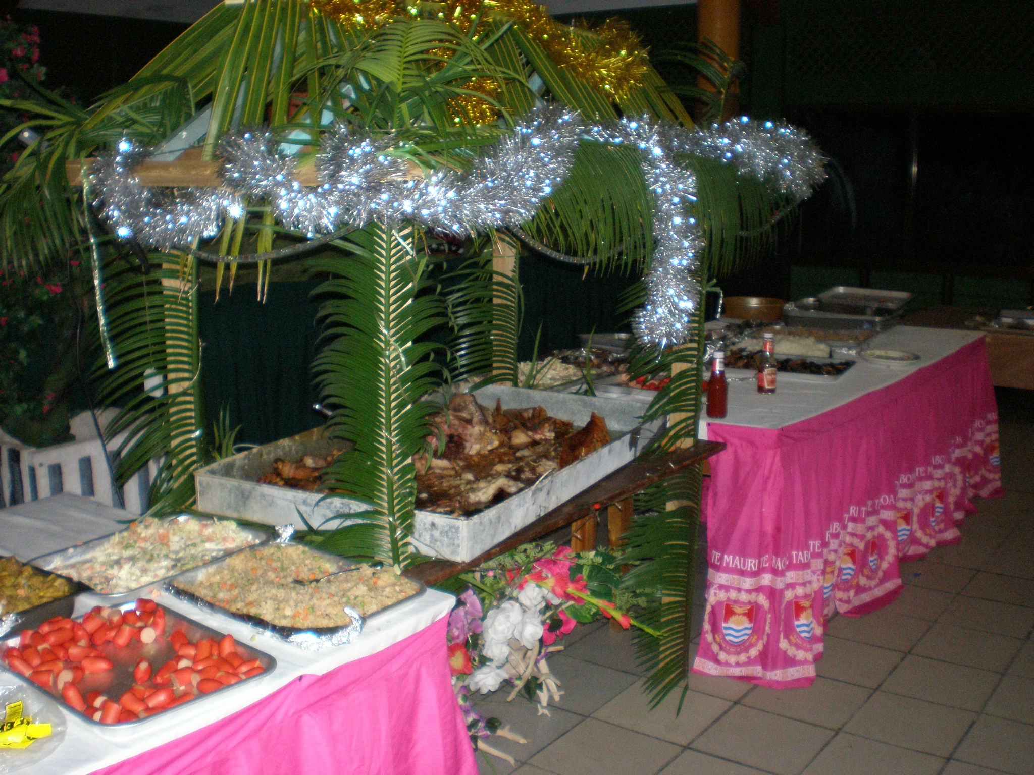 ▲Exotic decorations spice up Kiribati's hottest Christmas party. Who can resist this tasty traditional cuisine? |