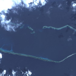 基本上,圖資的建置是成立GIS的第一步,但製作及更新圖資相當耗時及費錢,目前較先進做法可利用衛星影像進行圖資製作及更新。我國第一個自主性遙測衛星-福爾摩沙衛星二號(福衛二號)於2004年發射,影像解析度為2公尺全色態及8公尺多光譜,每天可定時對同一地點拍攝,因此在天氣許可下,可獲得全球大部份地區的即時衛星影像資料。友邦島嶼國家也在福衛二號衛星的拍攝範圍,如圖1為聖克里斯多福及尼維斯,圖2為諾魯,圖3為聖文森及格林納丁南端,圖4為吉里巴斯共和國。透過與友邦國家的合作及資料交換,這些衛星影像可重新製作成GIS的空間圖資。